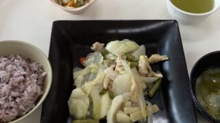 ヘルシー定食 野菜炒めと雑穀米。野菜をたくさん摂ることができました☺️野菜多めの食事の方が体調が良いような気がします☺️